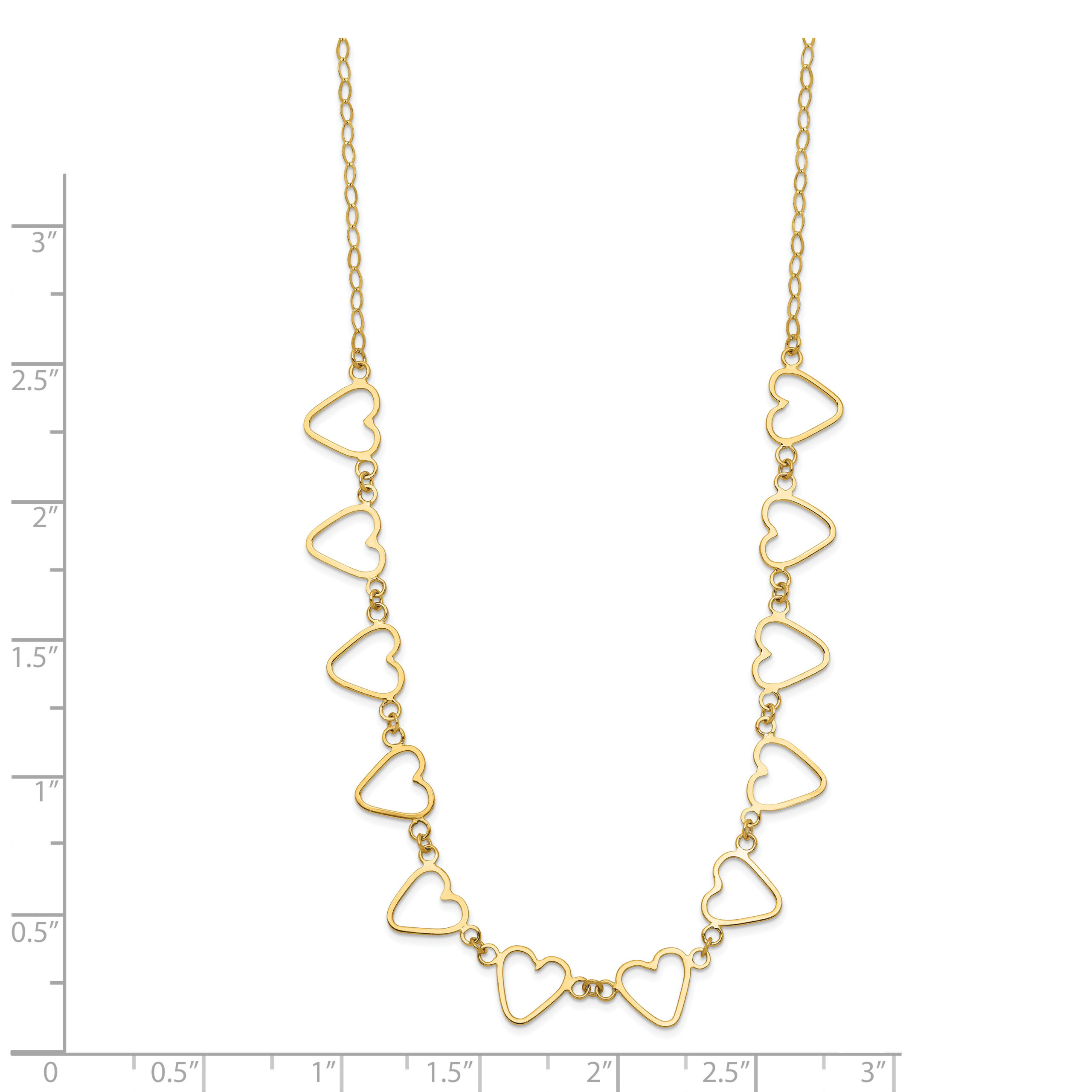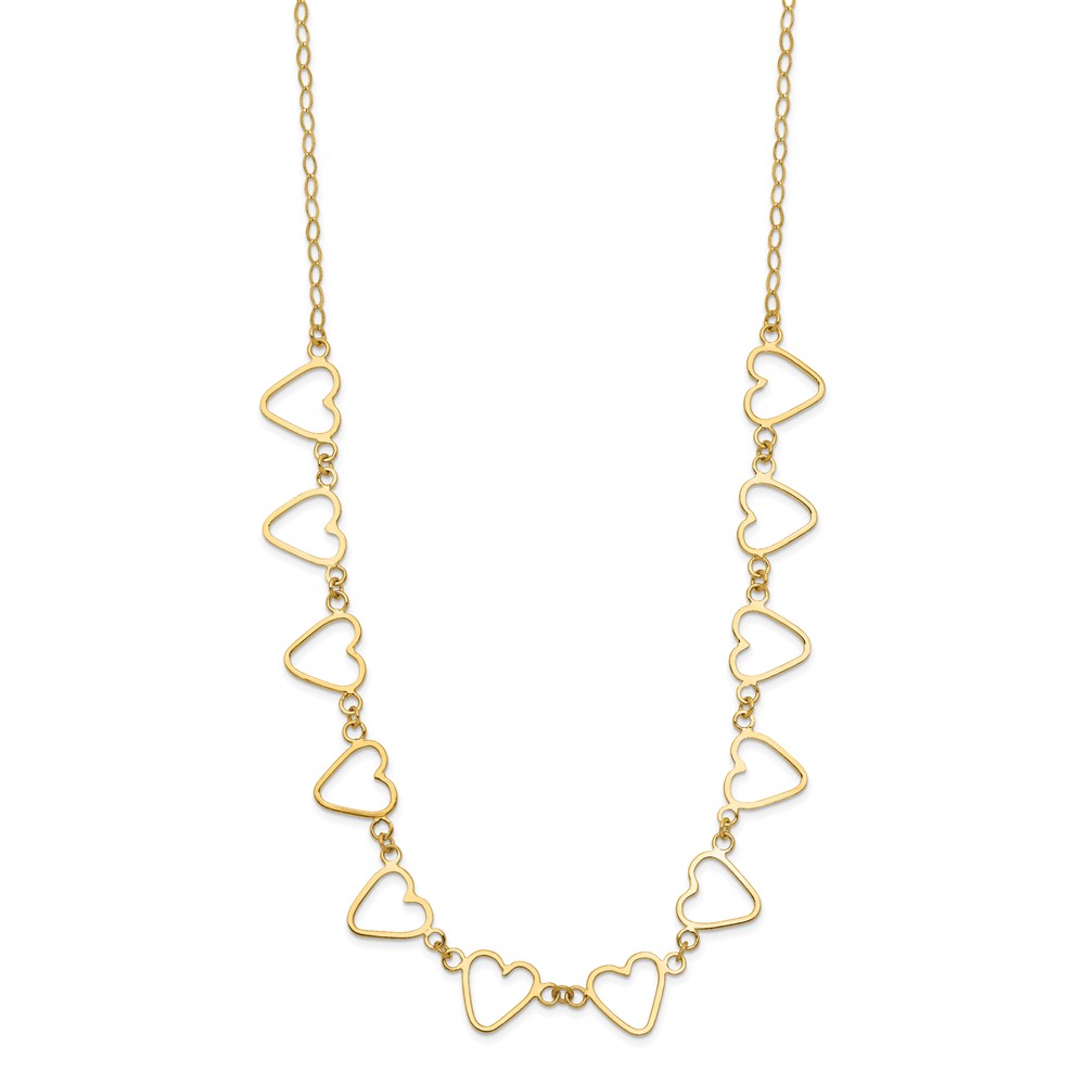 14K Oval Cable with Open Flat Hearts 16 inch w/ 2in ext Necklace