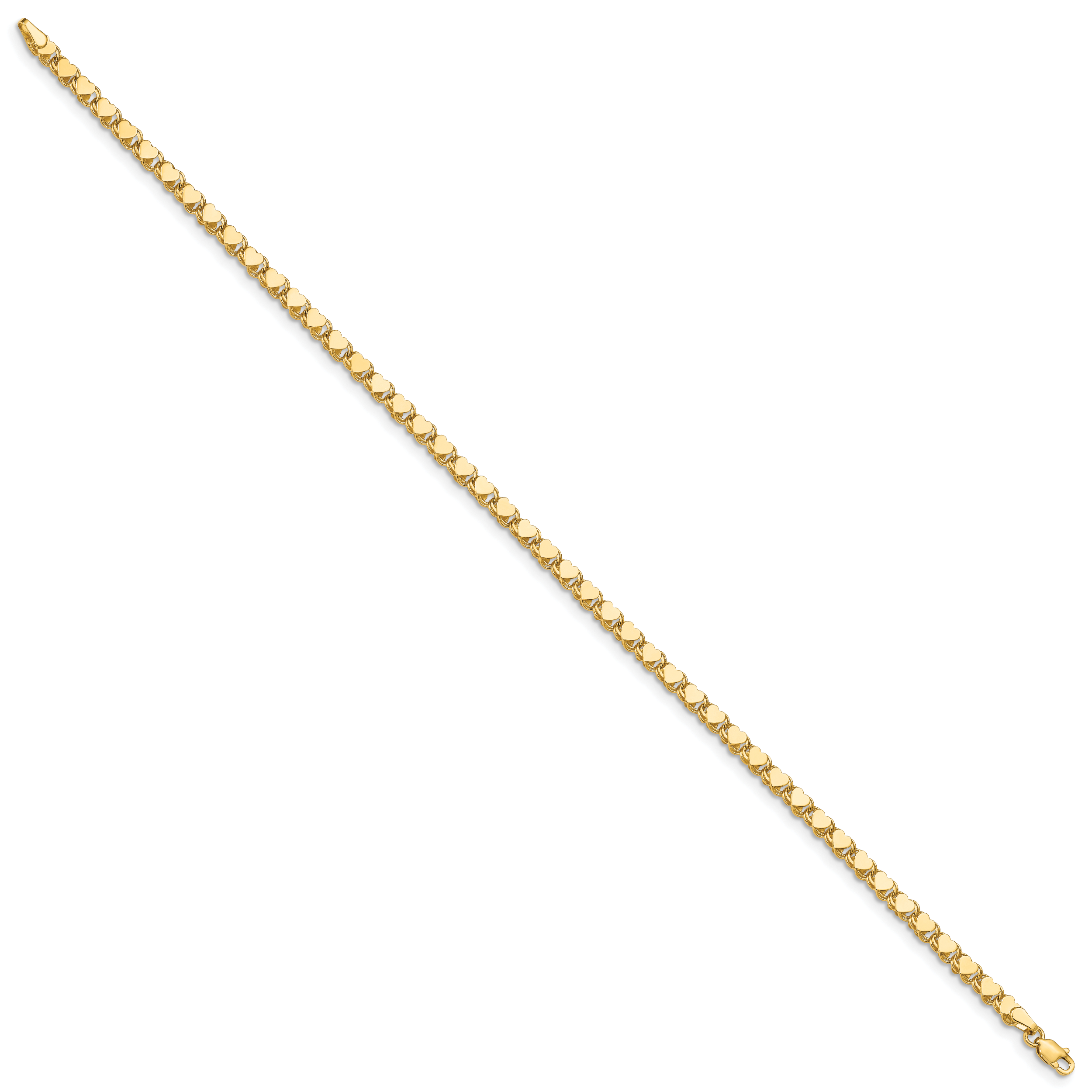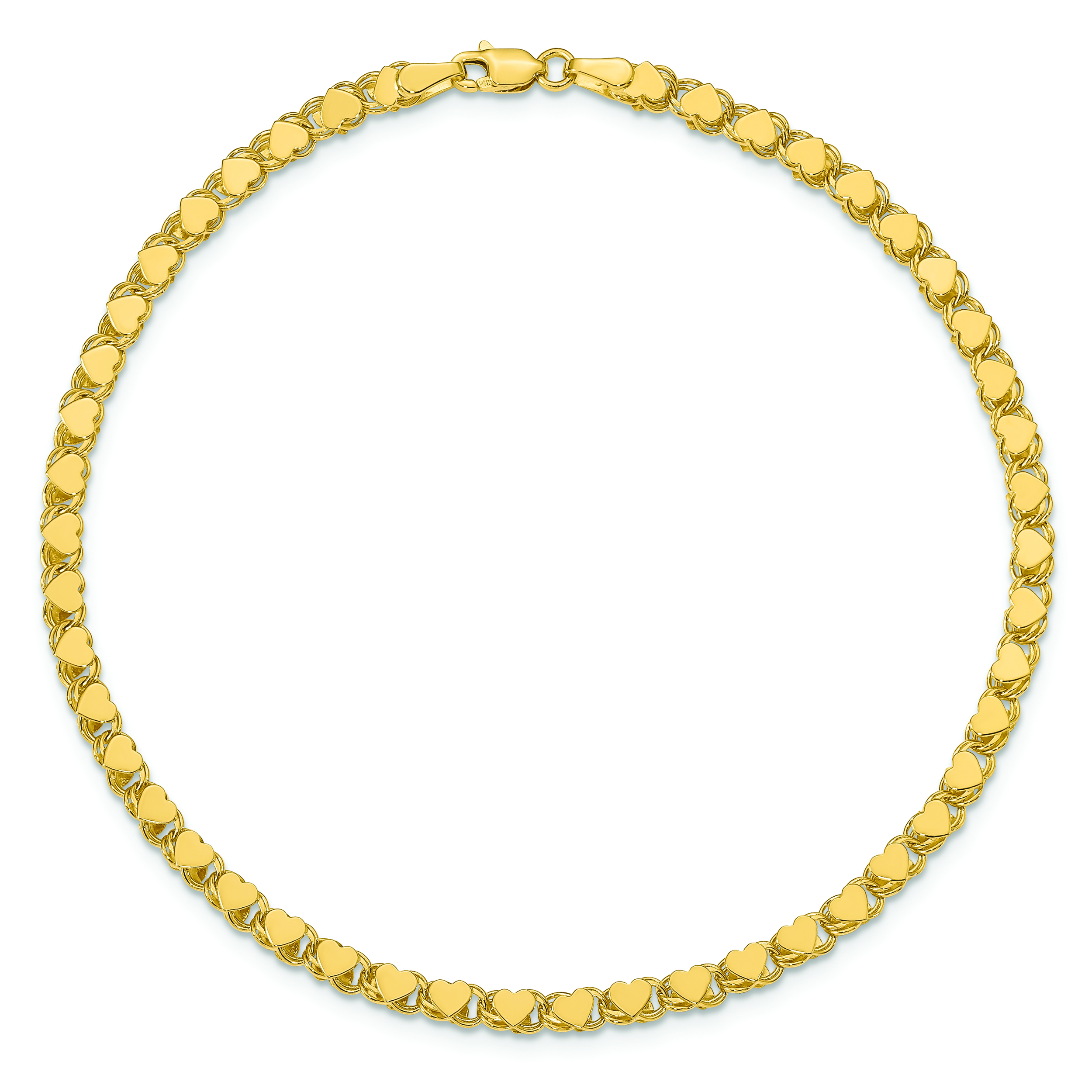 14k Polished Double-Sided Heart 10in Anklet