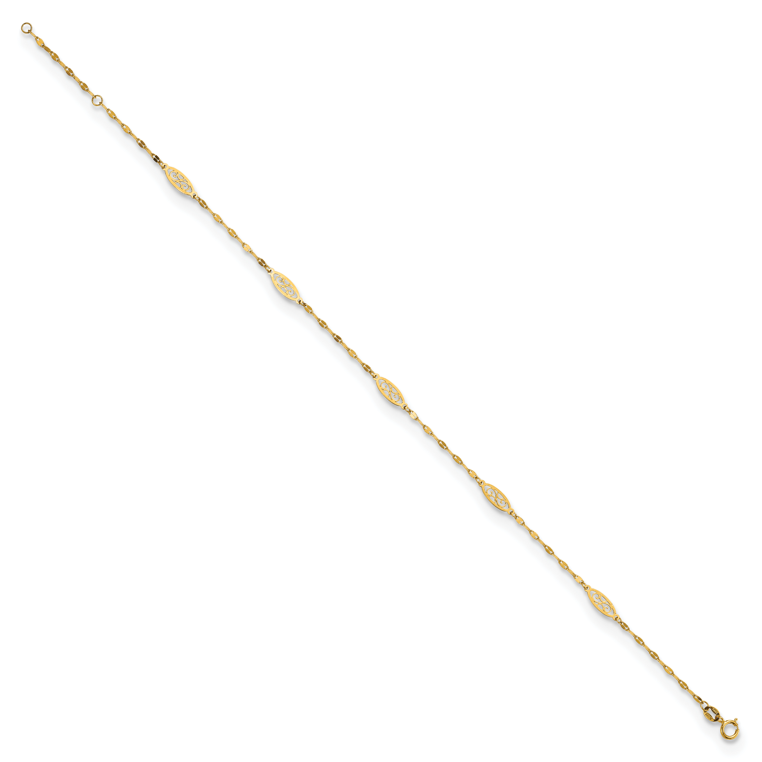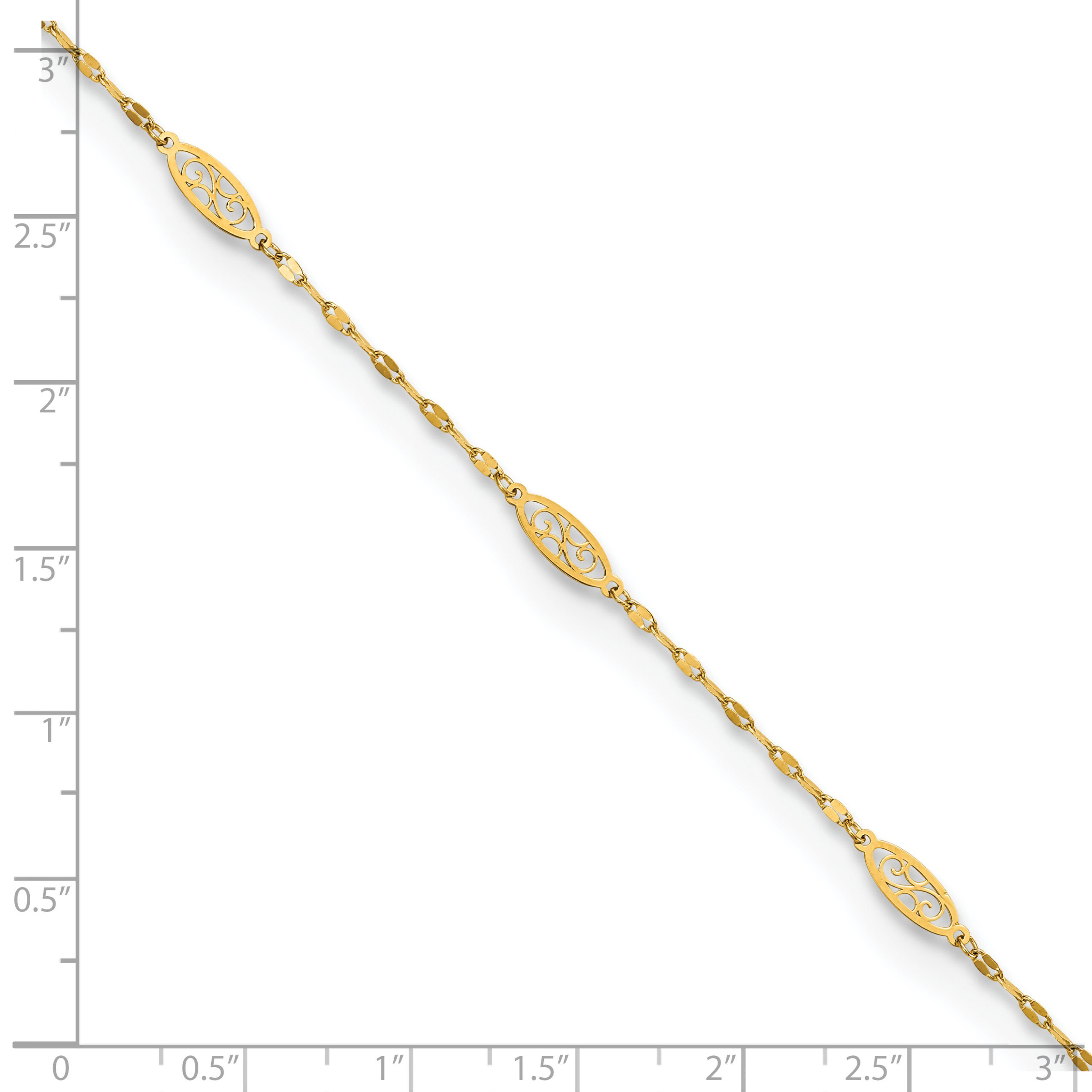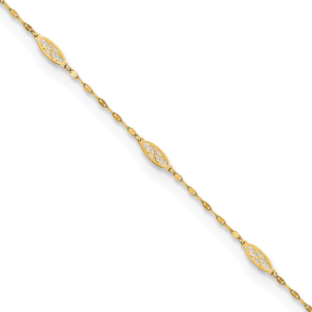 14K Polished Fancy Filigree Link 9in Plus 1 in ext. Anklet