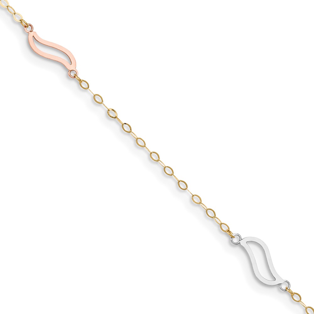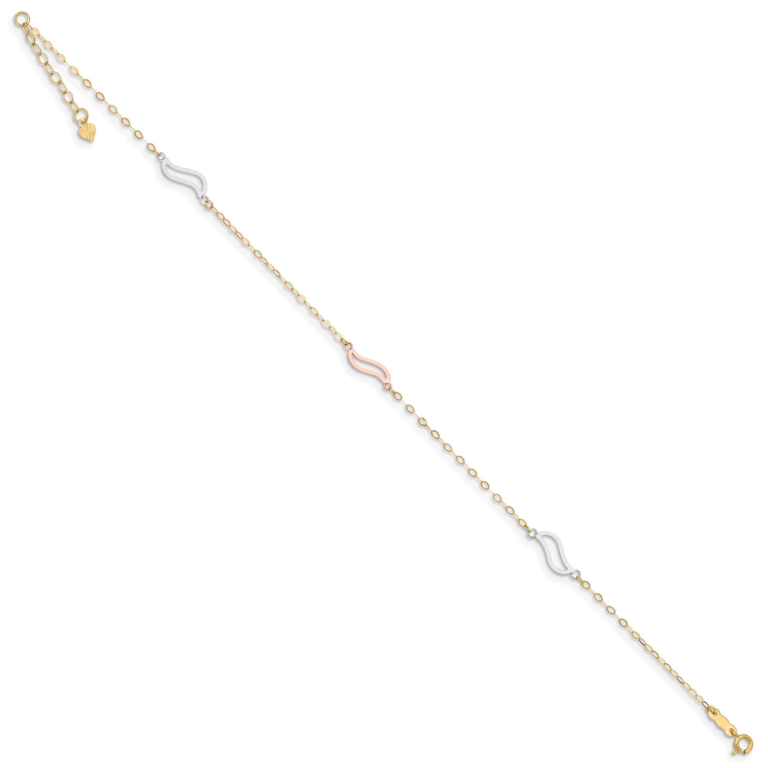 14K Tri-color with Open S Links 9in Plus 1in ext. Anklet