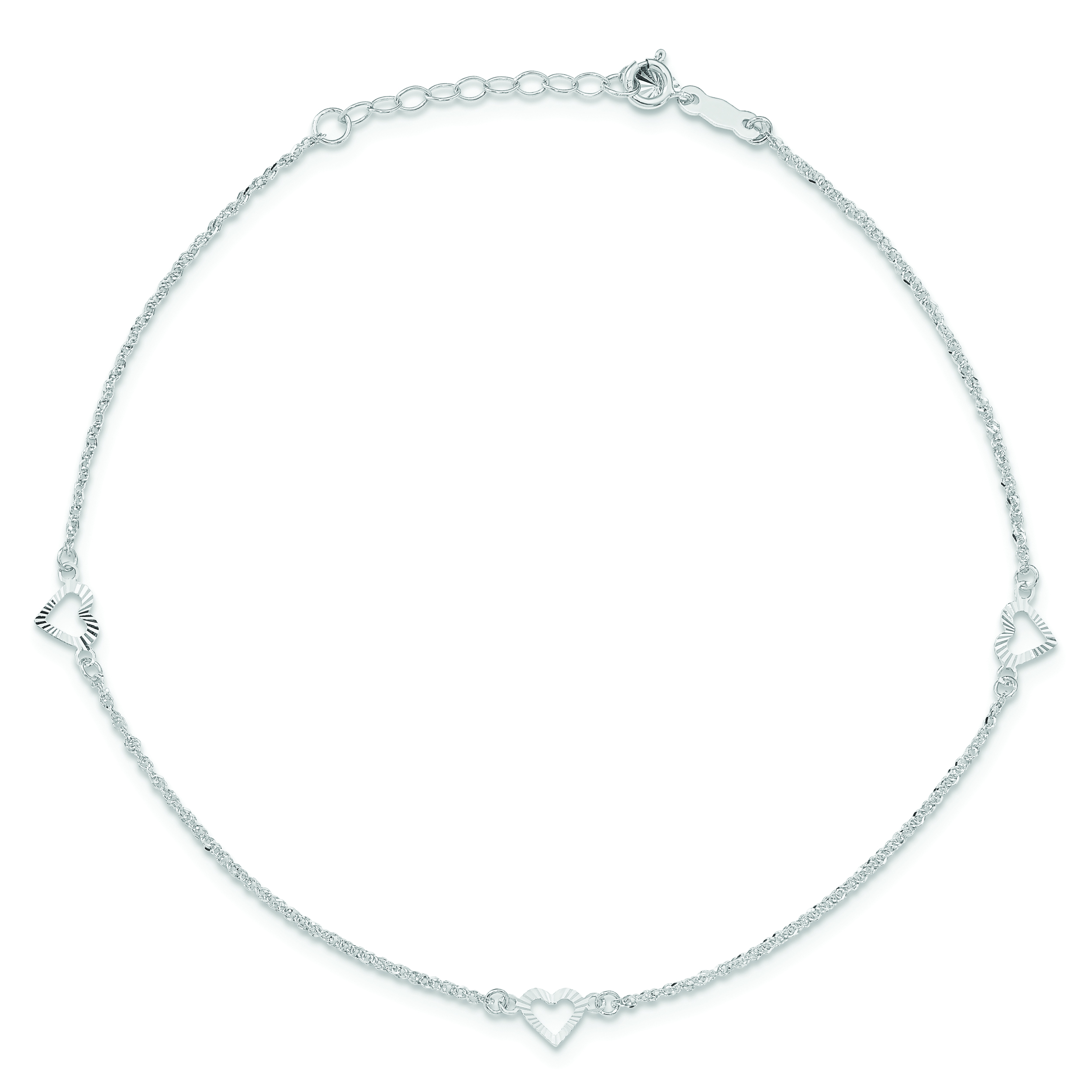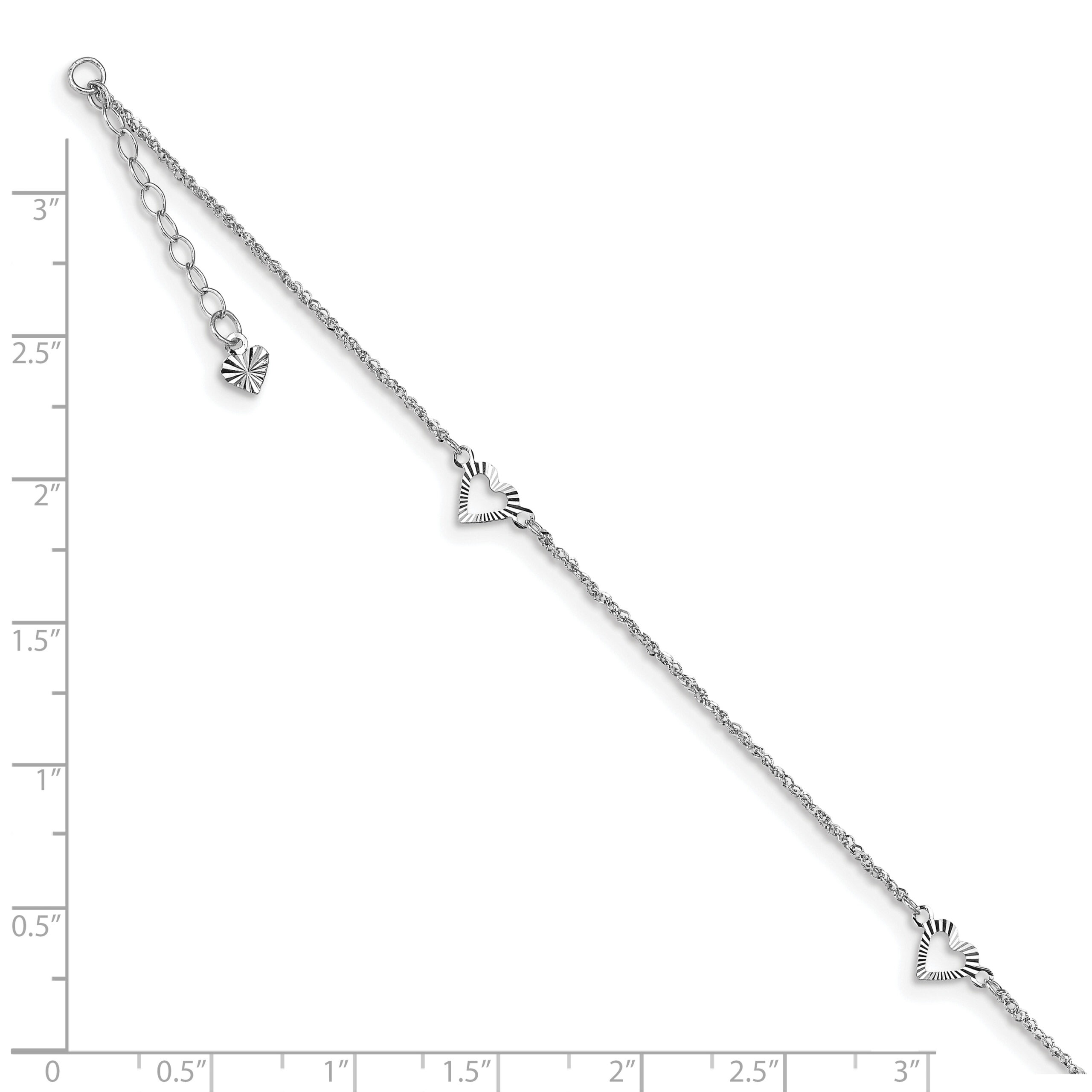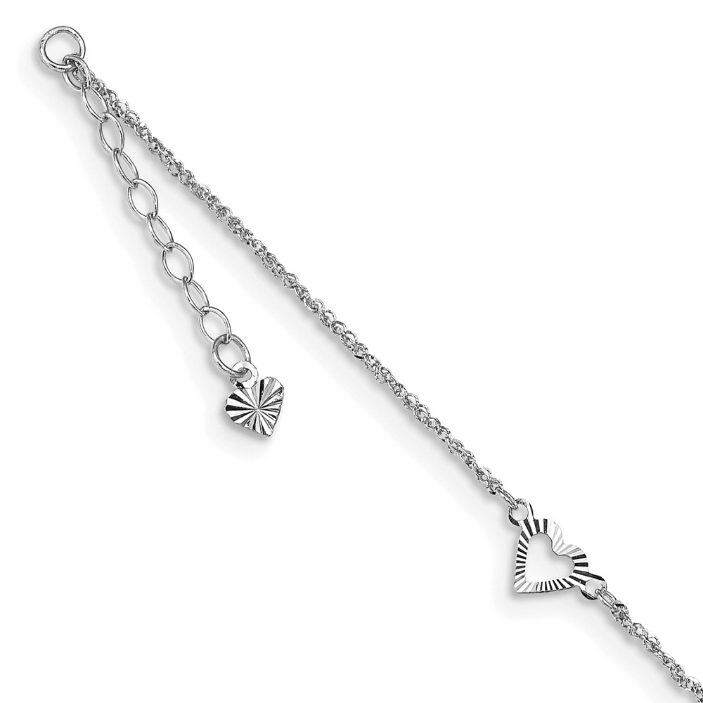 14k White Gold Diamond-cut Hearts 9in Plus 1in ext Anklet