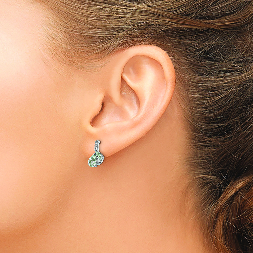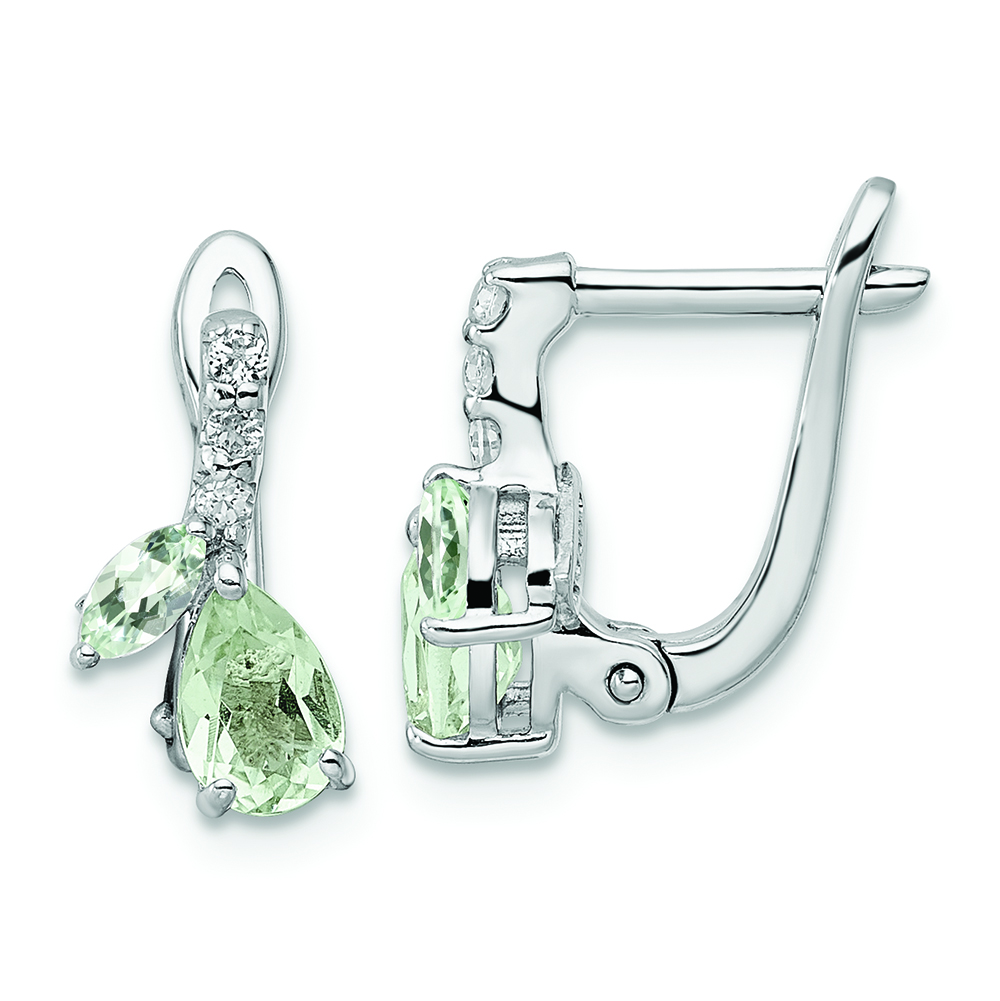 SS RH-plated 1.05t.w. Green Quartz/White Topaz Hinged Earrings
