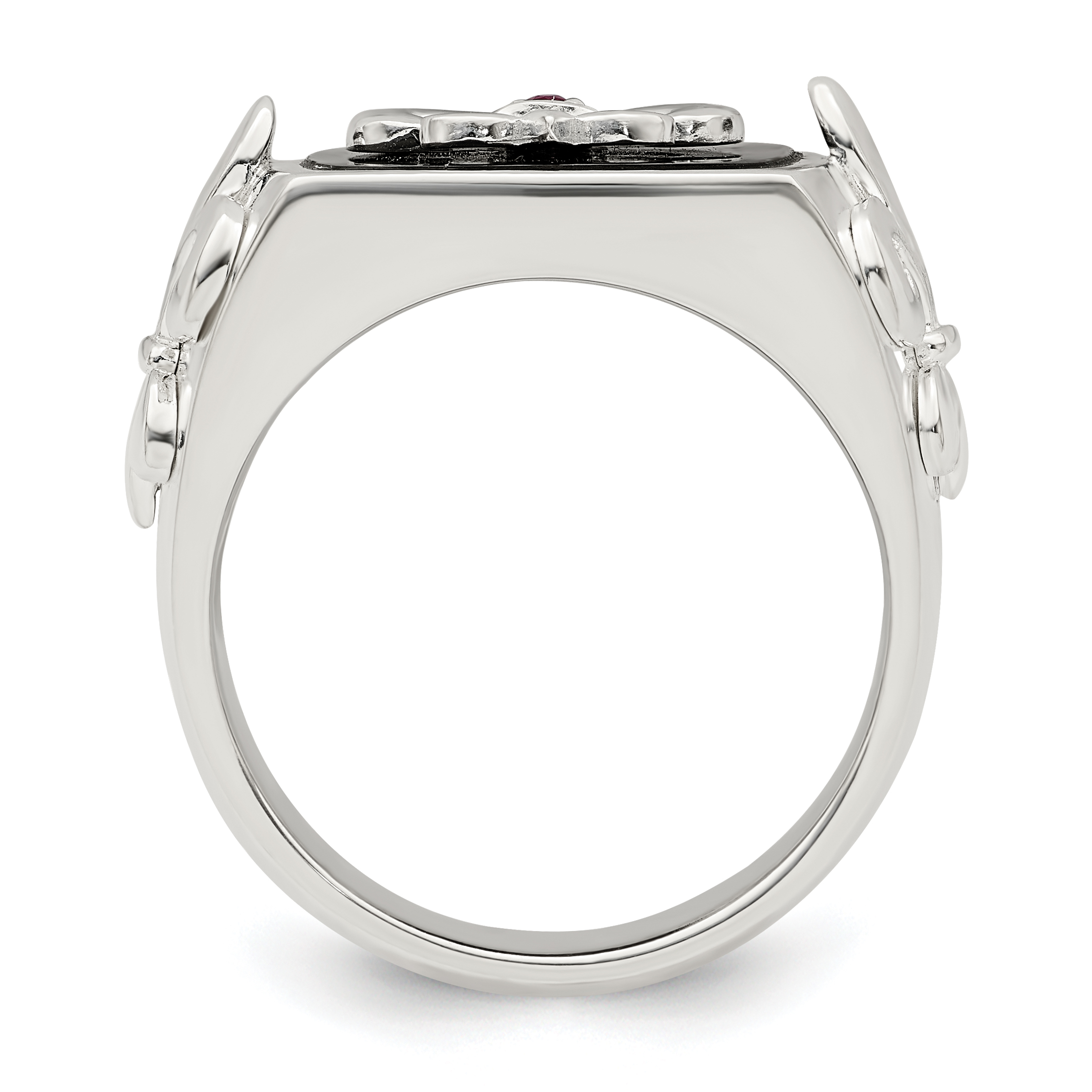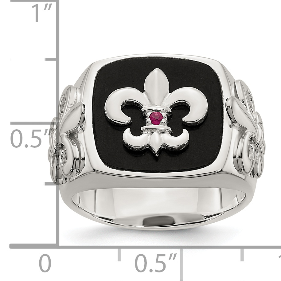 Sterling Silver .03Ruby/Black Agate Fleur de Lis Ring