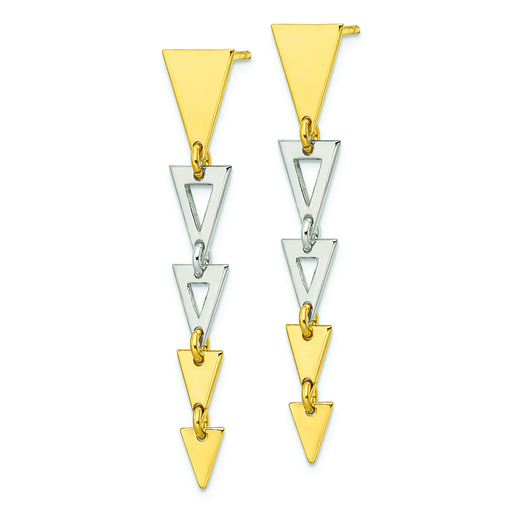 Sterling Silver & Gold-tone Fancy Triangles Post Dangle Earrings