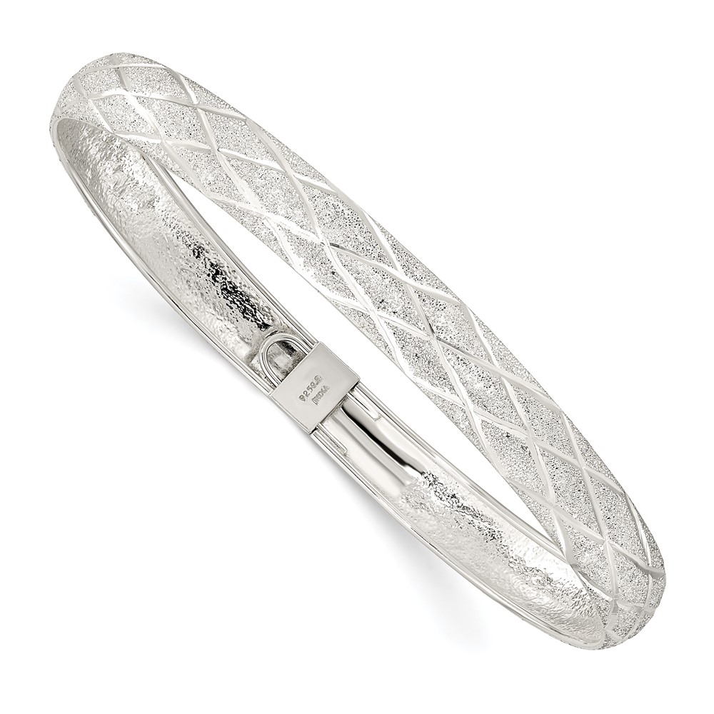 Sterling Silver Laser-cut X-Design 7.5mm Oval Flexible Bangle