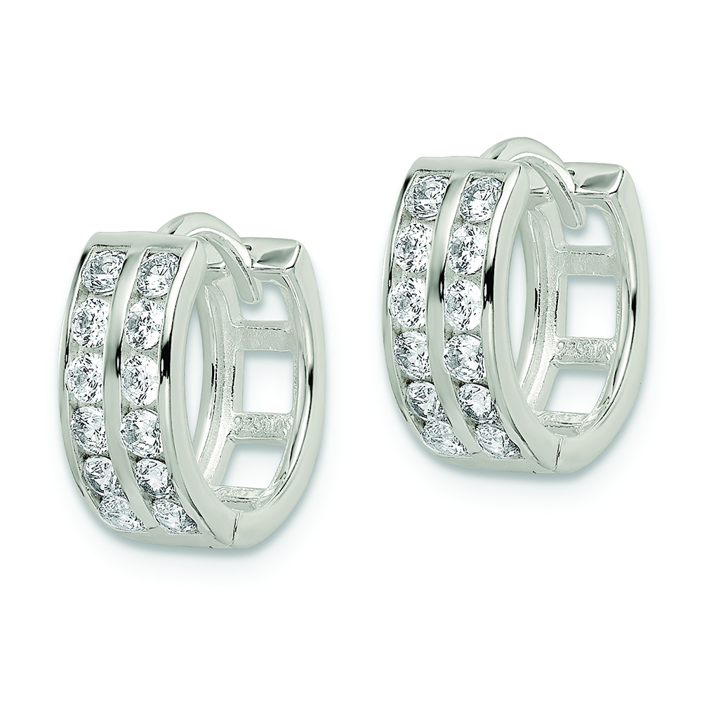 Sterling Silver Polished 2 Row CZ Hinged Hoop Earrings