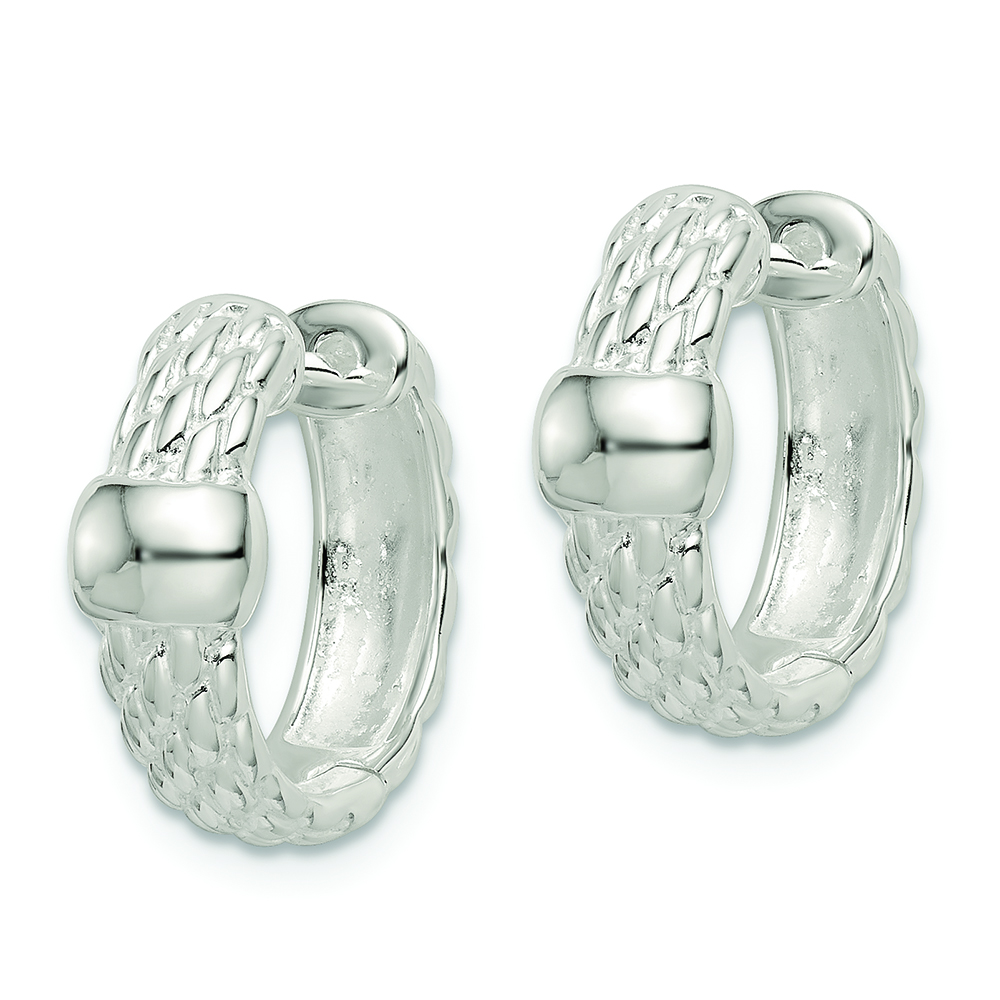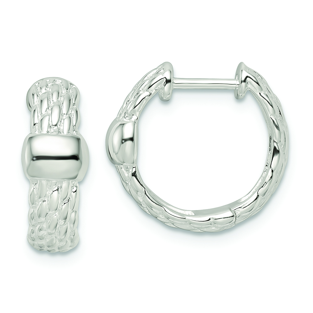 Sterling Silver Polished Basket Weave Hinged Hoop Earrings