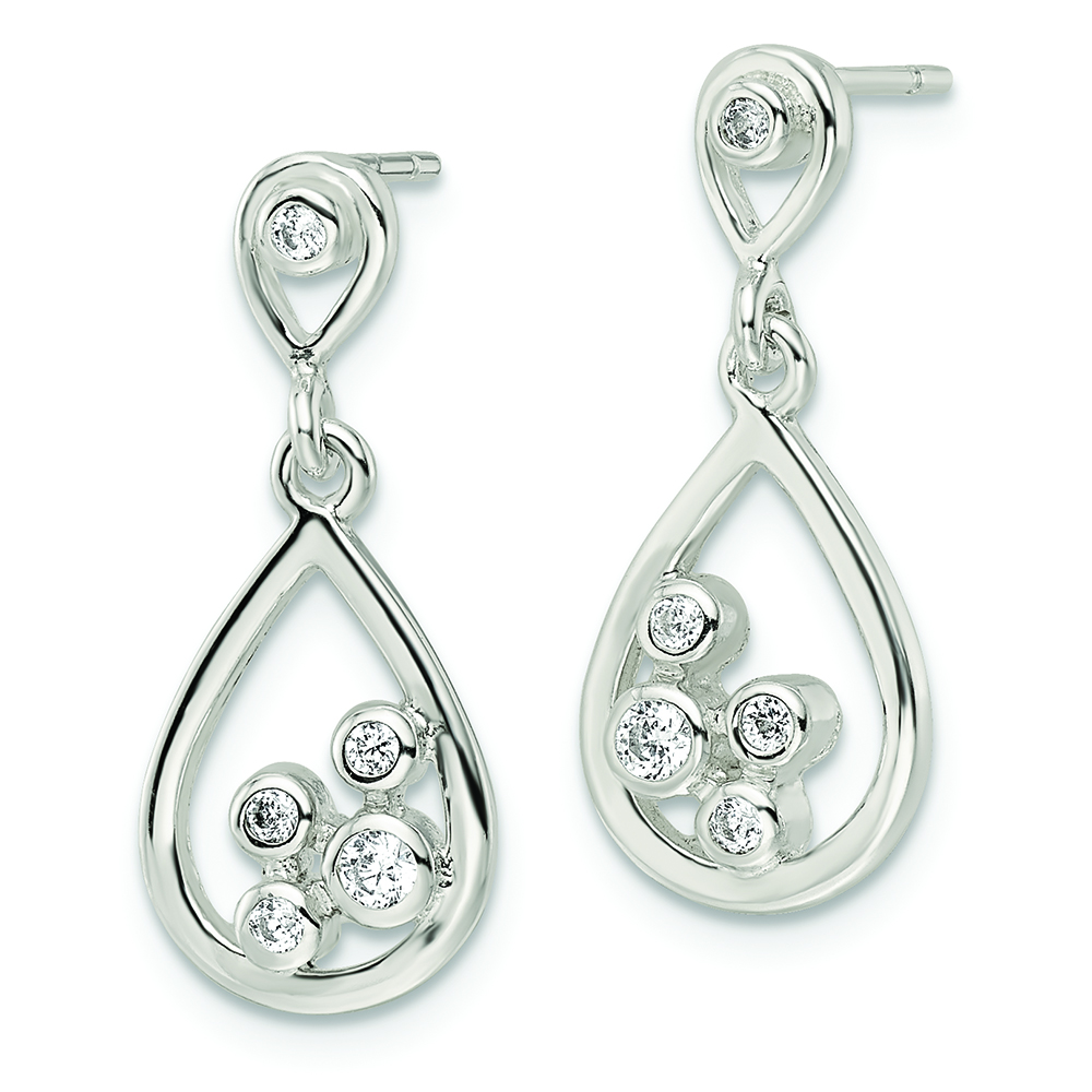 Sterling Silver Polished CZ Teardrop Dangle Post Earrings