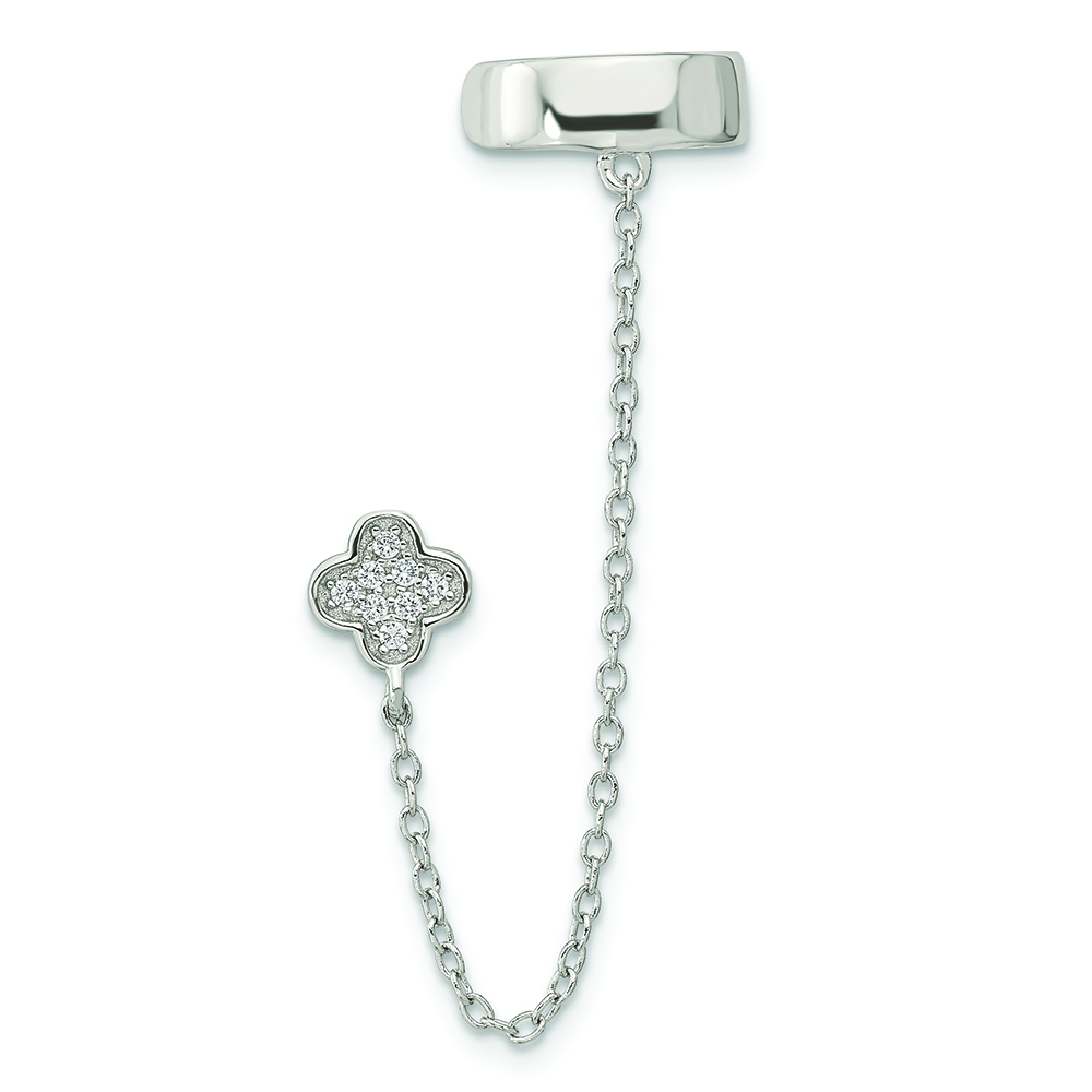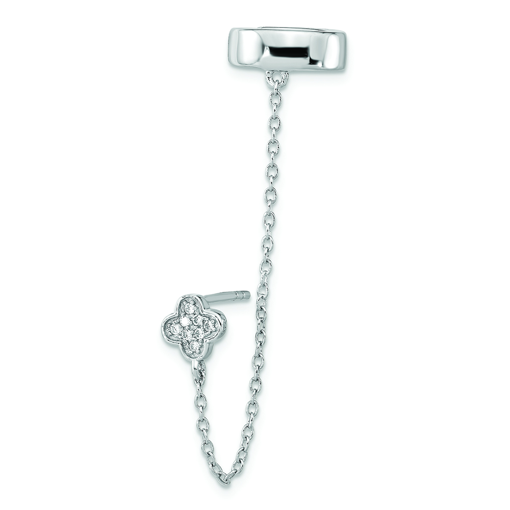 Sterling Silver RH-plated CZ Flower w/ 2inch Chain Single Post & Cuff Earr