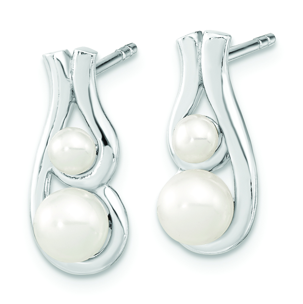 Sterling Silver Rhodium-plated FWC Pearl Post Earrings