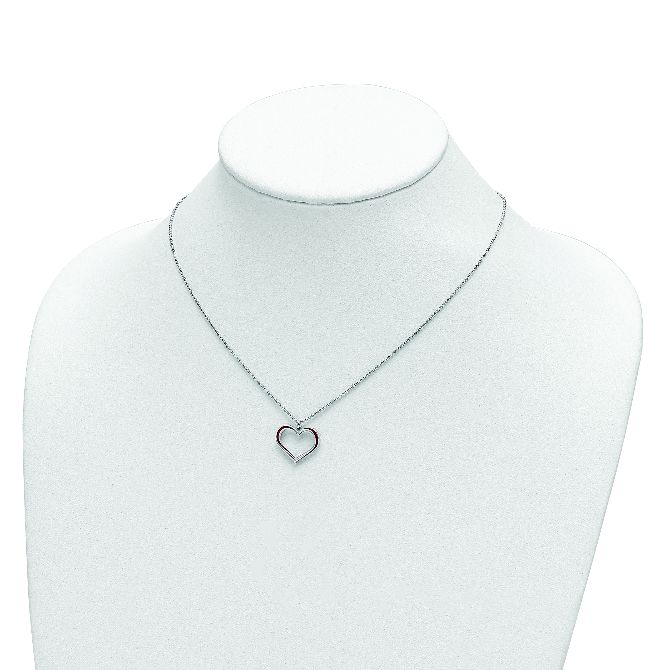 Sterling Silver Rhodium Plated Red Enamel Heart w/1 in Ext Necklace